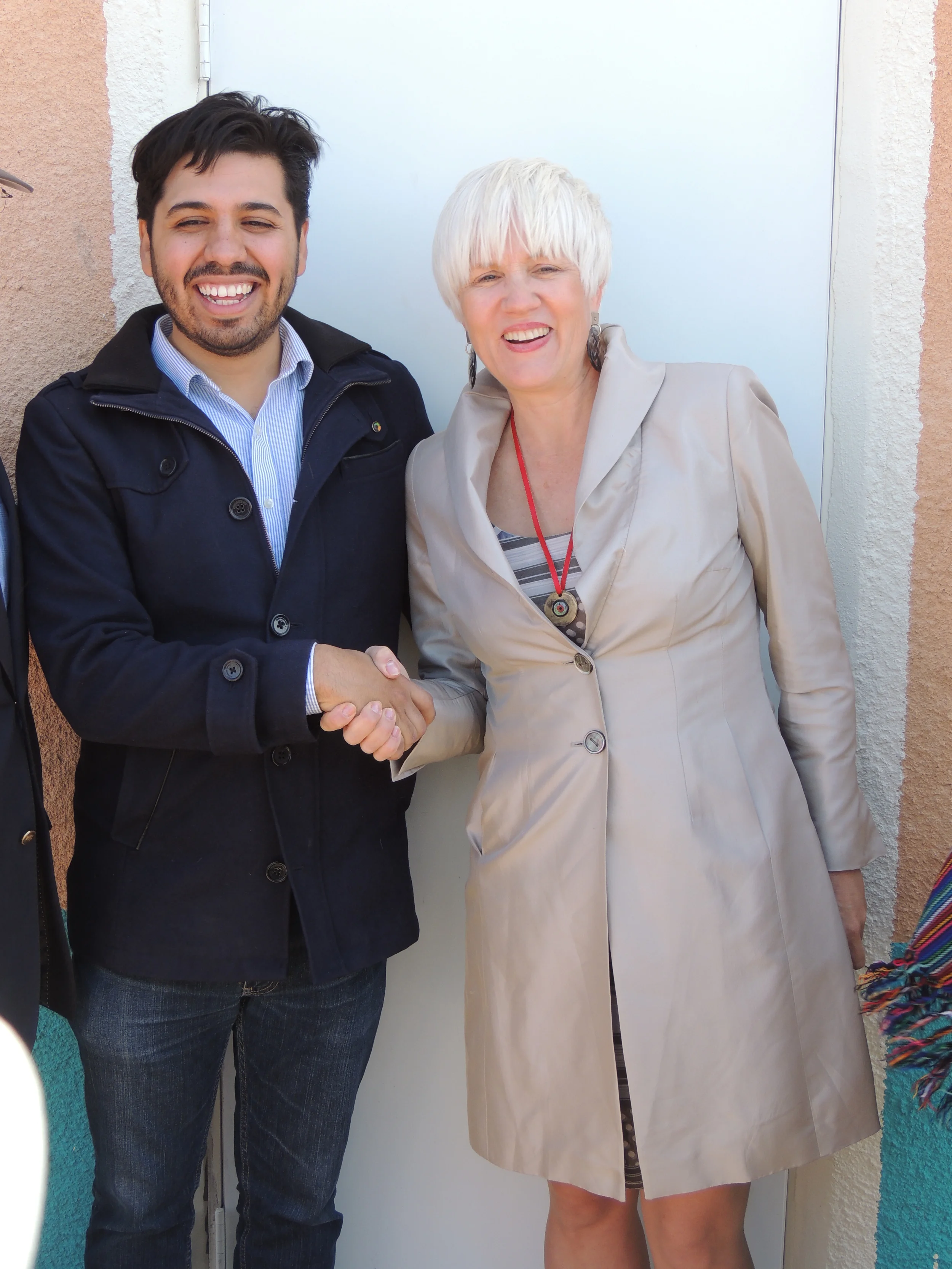 The Great Great Grandson of Pancho Villa shaking hands with the Granddaughter of General George S. Patton
